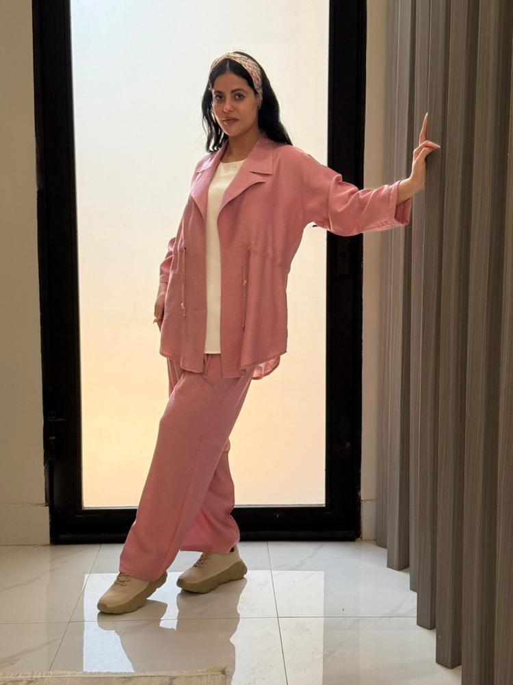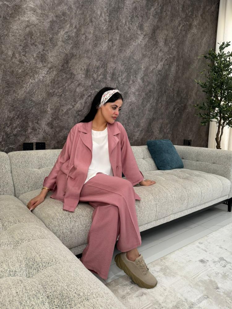 - طقم كتان حريمي مصمم بتصميم عصري يناسب جميع الأوقات والمناسبات الصيفية.